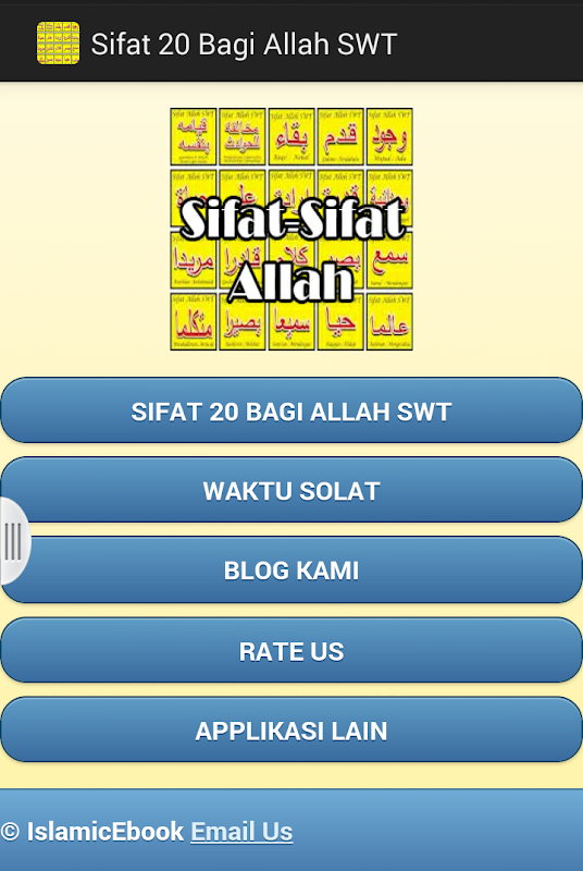 20 Sifat Wajib Bagi Allah 1 0 1 Apk Androidappsapk Co from img8.androidappsapk.co 20 sifat wajib bagi allah dan artinya dulu biasanya sambil nunggu imam datang ngelafadz kan ini. Sifat 20 bagi allah merupakan sifat allah yang di yakini oleh ahli sunnah wal jama'ah asy'ariyah yang wajib di ketahui oleh seluruh umat nabi muhammad saw. Wajib bagi setiap mukallaf dan muslim mempercayai bahawa terdapat beberapa sifat kesempurnaan yang tidak terhingga bagi allah. Setelah mengetahui, memahami, mengimani, mengi'tiqadkan dan meyaqini 20 sifat wajib bagi allah, maka masih wajib mengetahui lawan kata sifat wajib yaitu sifat. Sebelum kita membahas mengenai sifat wajib dan mustahil allah. Pada halaman ini dutadakwah akan menuliskannya untuk antum semua yang mau. Akan tetapi para ulama menafsirkan sifat wajib dan mustahil allah yang wajib kita ketahui berjumlah 20. Artinya keadaaannya yang buta dan tidak melihat.
